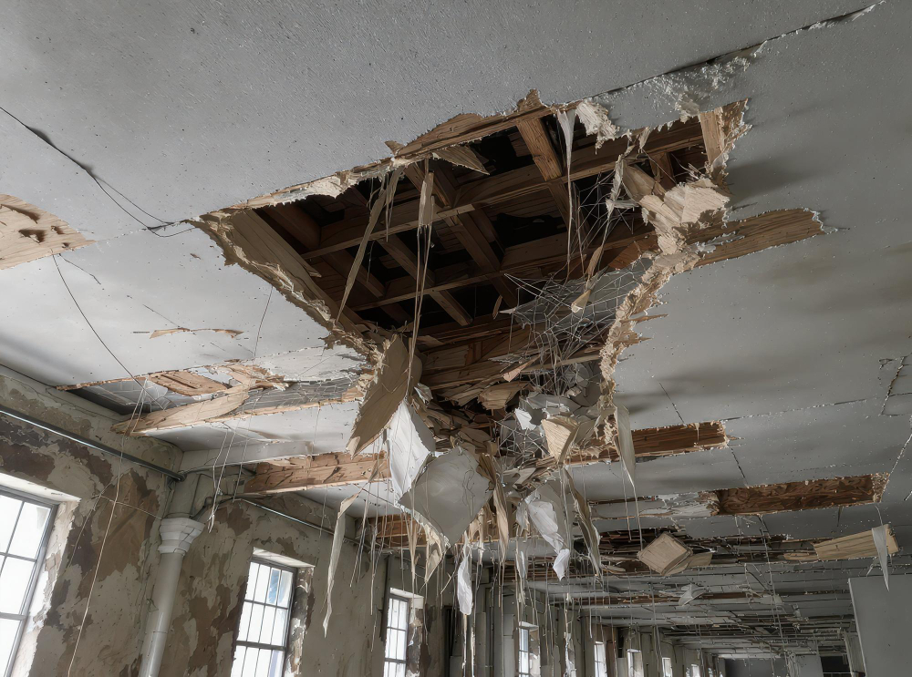 Los colapsos de techos son un peligro grave y prevenible, particularmente en edificios antiguos de la ciudad de Nueva York con mantenimiento deficiente. Cuando un propietario o dueño de una propiedad no aborda daños por agua, deterioro estructural o defectos conocidos, puede ser considerado responsable de cualquier lesión que resulte.